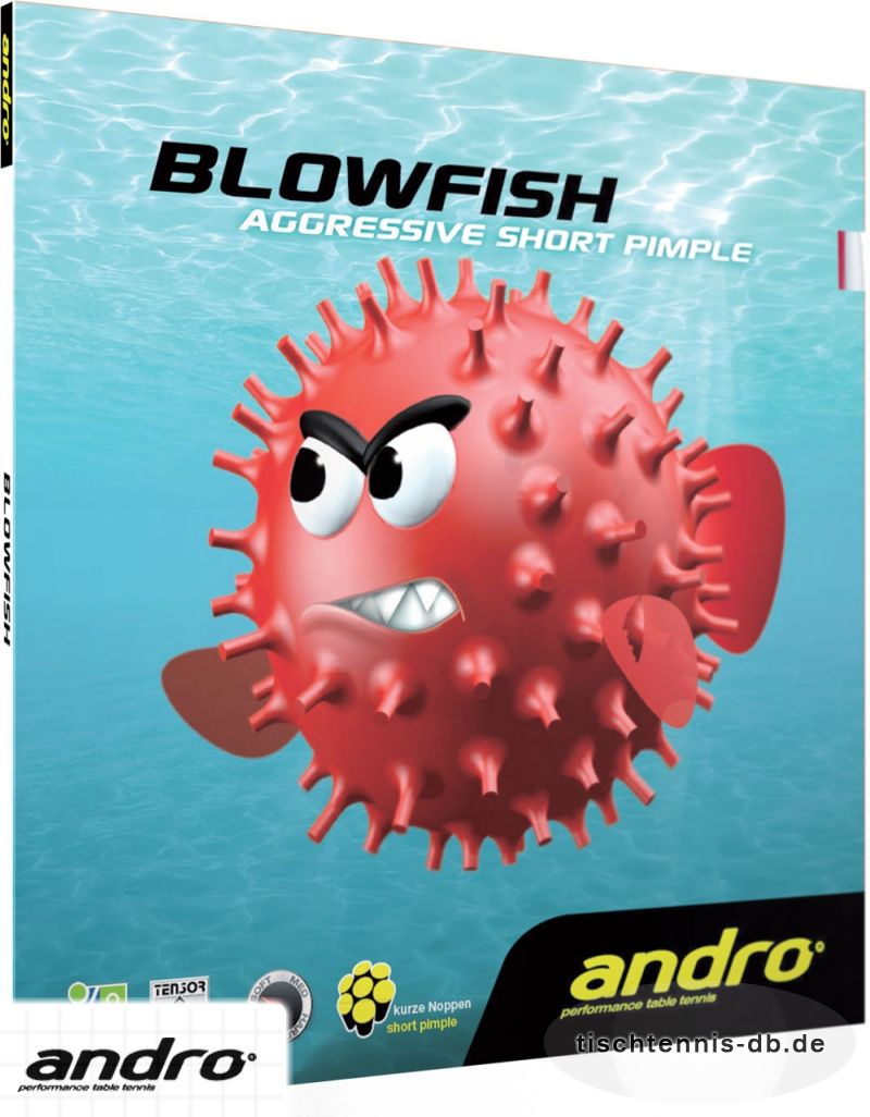 andro Blowfish: Ein recht offensiver "Lass uns mal den Gegner ärgern"-Belag aus der Reihe der kurzen Noppen-Beläge. Für den andro Blowfish stehen ...